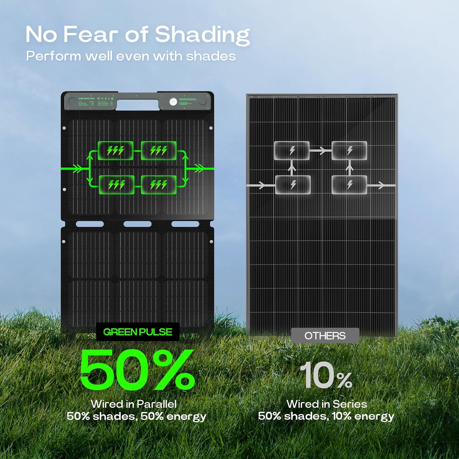 This ACACIA 120 watt Portable Solar panel is great for many uses. You can use it for your EV, off-grid systems, and camping. It can even help as an alternator for some setups. The foldable design makes it compact. The holder keeps it secure when folded. It’s much lighter than other similar panels. So it won’t weigh you down on your trips. The monocrystalline cells are very good at capturing sunlight. You get more power even when the sun isn’t super bright.