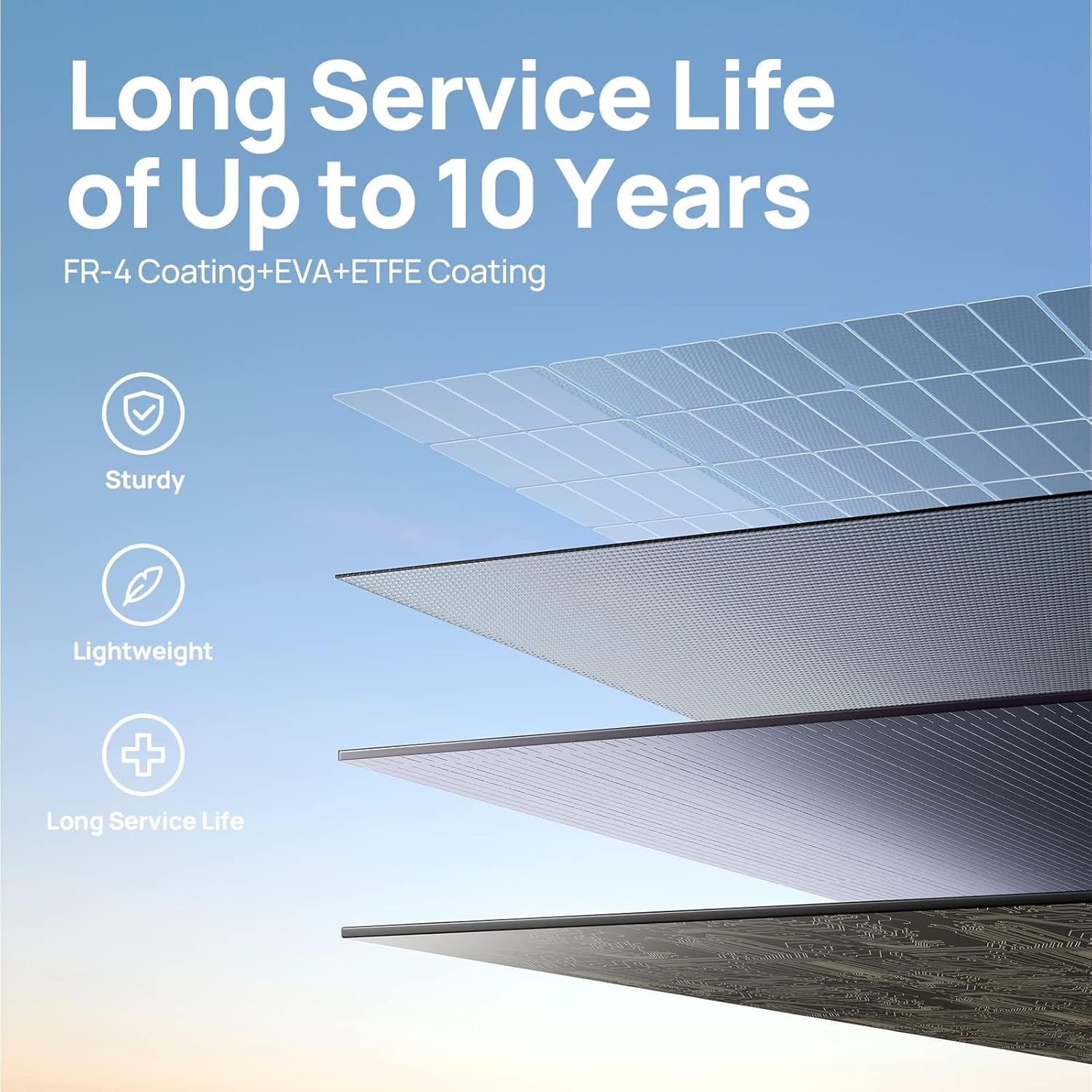 • ✅ 【Waterproof & Protection】With an IP54 waterproof rating, the SP100 is perfect for dealing with dust and splashing water on a daily basis. The ETFE film on the surface of the panels provides additional UV protection that extends the life of the solar panels.