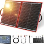 The Ekunivers 120 watt Portable Solar Panel Charger is a foldable, high-efficiency monocrystalline solar panel designed to charge power stations and other devices for camping and outdoor activities. It features QC3.0 USB-A, Type-C, and DC outputs, and it has an IP65 waterproof rating, meaning it can handle splashes of water but should not be dunked. This 120 watt panel is portable for travel, but being monocrystalline, it can be a bit heavy and needs space for storage. Keep in mind that the power it produces can change depending on the sunlight, and it might not work with all devices, plus the plug might sometimes feel a little wobbly, and it does not come with a built-in stand. Read more…