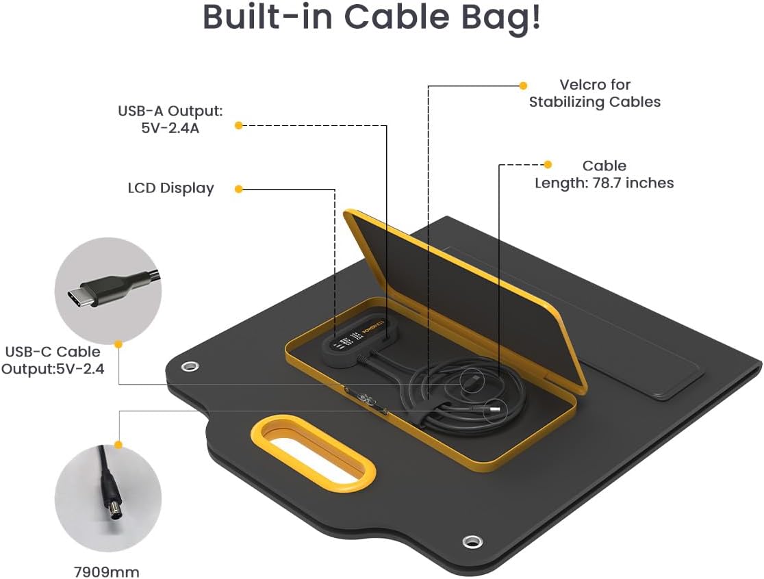 This Powerness 200 watt portable solar panel is designed for charging power stations, RVs, and other outdoor devices using sunlight. It features a digital LCD screen that shows charging information in real-time. The panel is foldable, relatively lightweight, and has a high efficiency of about 23%. It’s made with durable materials, has an IP65 water resistance rating, and uses ETFE lamination for better light capture. It includes USB-A and USB-C outputs, comes with a USB-C cable, and has multiple DC connectors for wide compatibility. However, it does not include adapters, some users found the kickstands weak, and there are reports of incorrect sizes being ordered, compatibility issues with some devices, units arriving damaged, and potential problems with the LCD design, inconsistent power output, and extension cords. Read more…