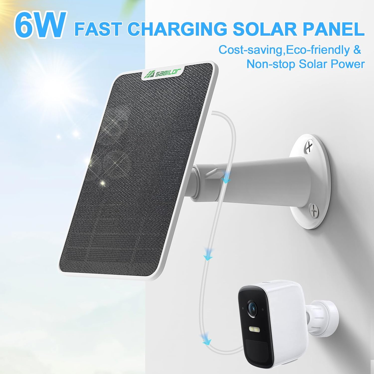 The Sabilor Solar Panel for Eufy Cameras is also built to last. It is IP65 waterproof. This means it can handle rain and other weather. You can trust it to keep working, rain or shine. It’s a reliable part of your home security. This solar panel offers a simple way to get continuous power. You will have fewer interruptions and more peace of mind.