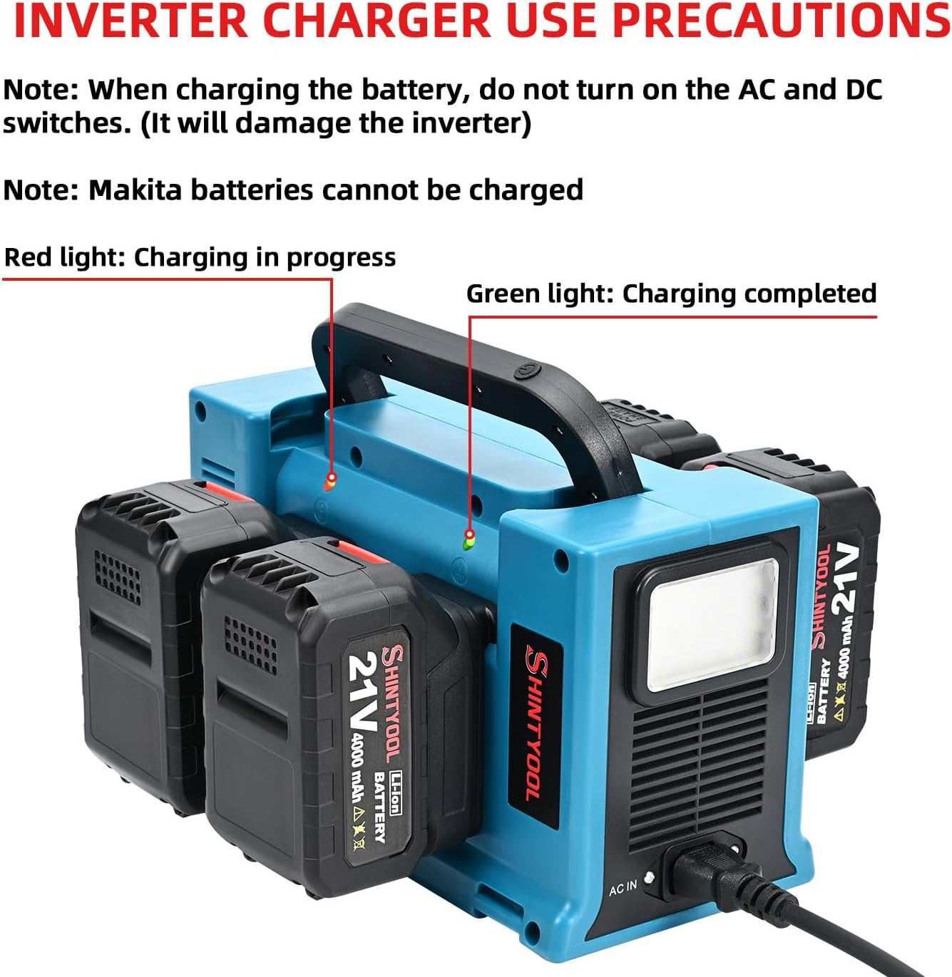 This SHINTYOOL 21V Battery Pure Sine Wave Inverter is also friends with Makita batteries, so you can use them to power your devices too. However, it’s important to remember that it can power your Makita batteries but not charge them. It’s like having a translator that helps different devices speak the same power language, but it doesn’t teach them how to make more power. This makes it versatile for various outdoor activities, and many customers find this compatibility very useful for their different power needs.