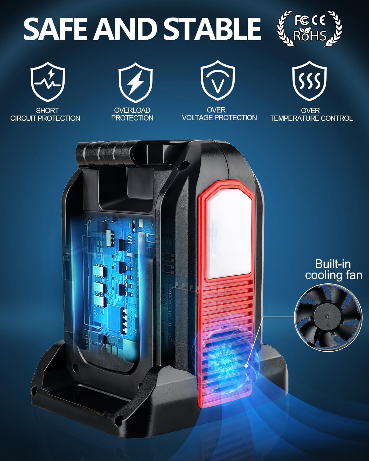 The Taingwei 350 watt Power Inverter turns your Milwaukee M18 18 Volt battery into a portable power station. It provides 350 watts of pure sine wave power, which is good for sensitive electronics. You can plug in your regular devices using the two AC outlets and charge your phones and other gadgets with the three USB-A ports and one USB-C port. It also has a built-in LED light for times when you need extra brightness. This inverter is helpful for camping trips or during emergencies, but remember, it’s just the tool, so the battery is not included.