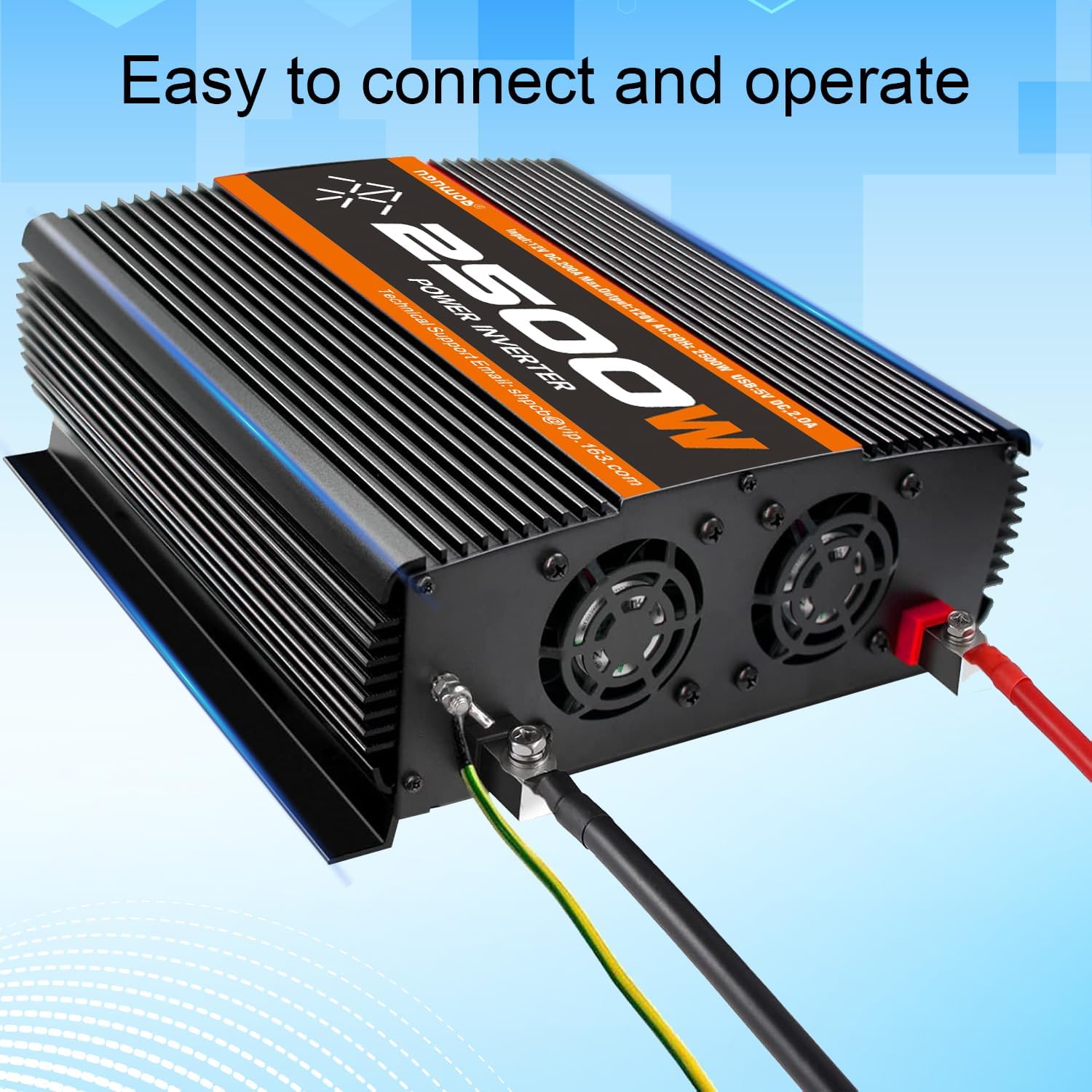 The Design of this TVNIKD 2500 watt 12 Volt to 110 Volt Inverter seems pretty thoughtful. It has built-in safety features, and these features help protect your devices from things like overheating or power surges. There is also a smart cooling fan. The fan only turns on when it needs to, and this helps keep the inverter from getting too hot without wasting too much power. The Manufacturer has also included a USB port, which is great for charging phones and tablets.