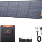 This Wagnation 200 Watt solar panel is made to be carried easily because it can fold up. It has its own stands to help it lean towards the sun. You can use the QC3.0 USB-A port and USB-C output to charge your phones and power banks quickly. It also has an MC4 connector for bigger power stations. This panel is strong enough to handle splashes of water, so it’s good for camping, hiking, RV trips, and when the power goes out. It gives you 200 watts of power from the sun.